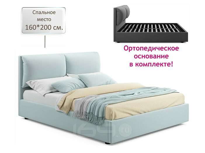 Кровать Vita с матрасом велюр мята пастель без П/М 1600x2000, изголовье мягкое