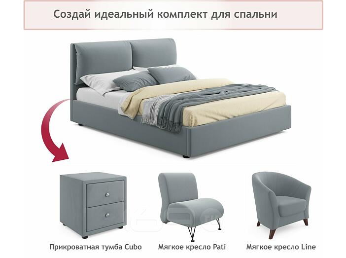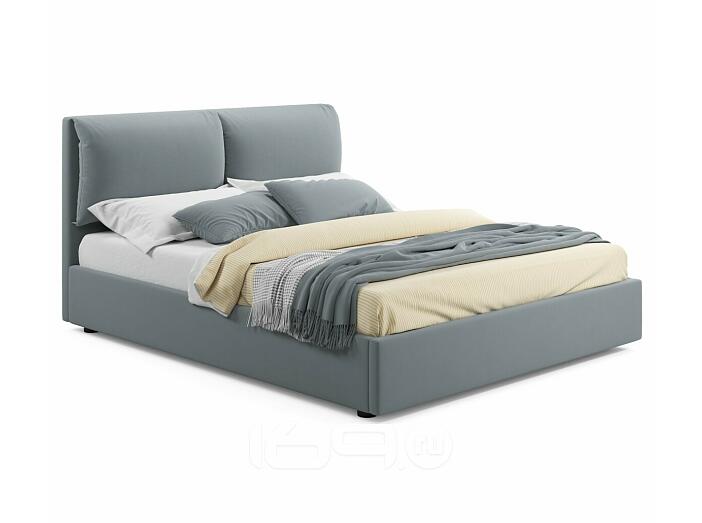 Кровать Vita с матрасом велюр серая без П/М 1600x2000, изголовье мягкое