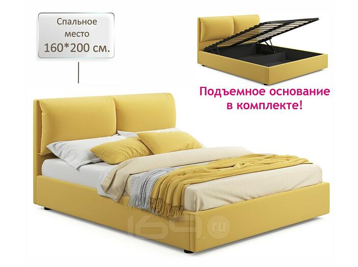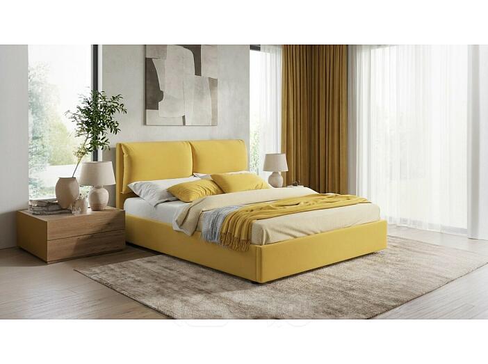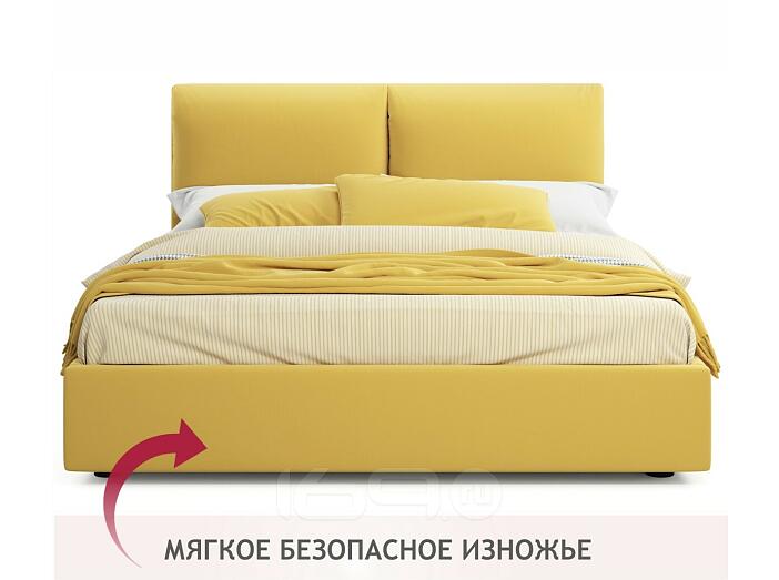 Кровать Vita с матрасом велюр желтый С П/М 1600x2000, ортопедическое основание, изголовье мягкое