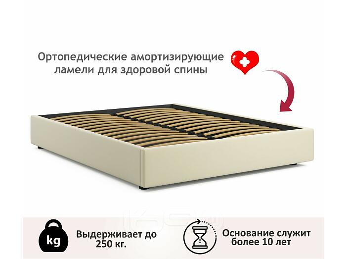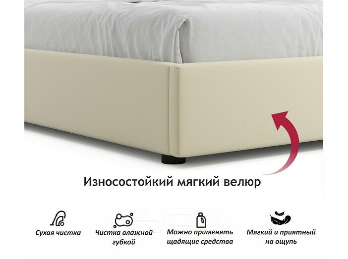 Кровать Base с матрасом велюр бежевый С П/М 1600x2000, ортопедическое основание, без изголовья