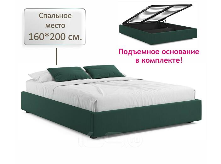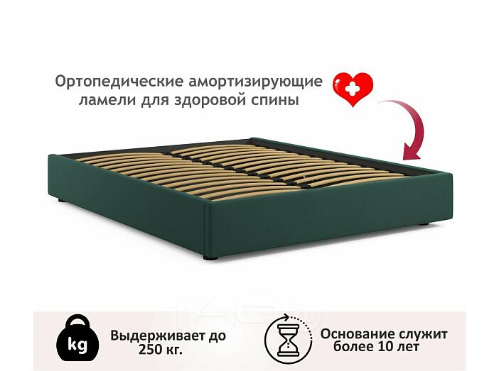 Кровать Base с матрасом велюр изумруд С П/М 1600x2000, ортопедическое основание, без изголовья