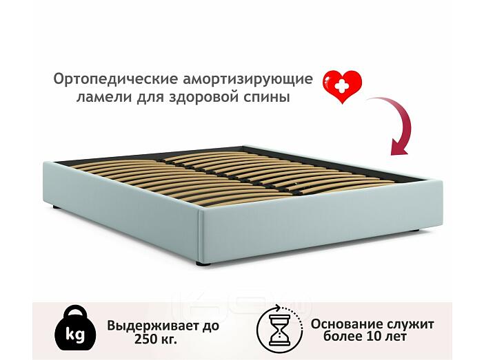 Кровать Base с матрасом велюр мята пастель С П/М 1600x2000, ортопедическое основание, без изголовья