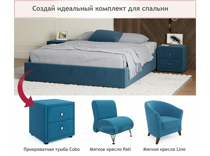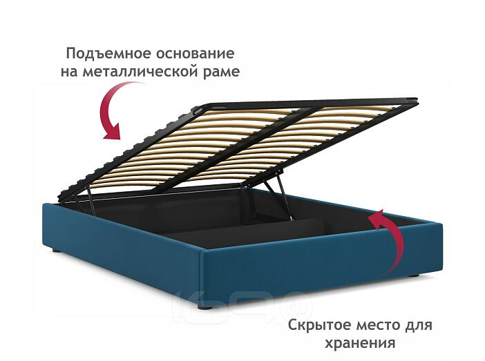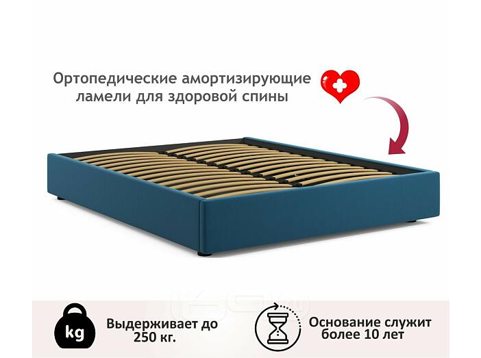 Кровать Base с матрасом велюр синий С П/М 1600x2000, ортопедическое основание, без изголовья