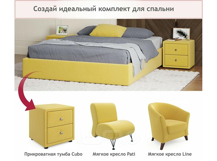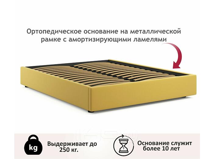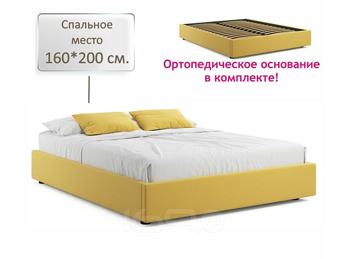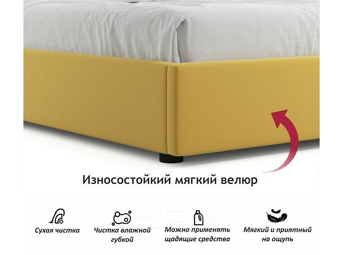 Кровать Base с матрасом велюр желтый без П/М 1600x2000, без изголовья