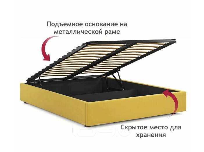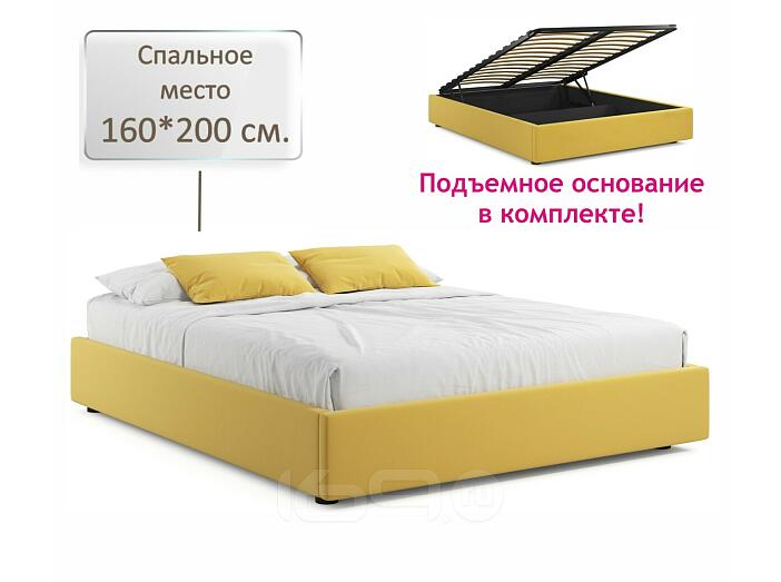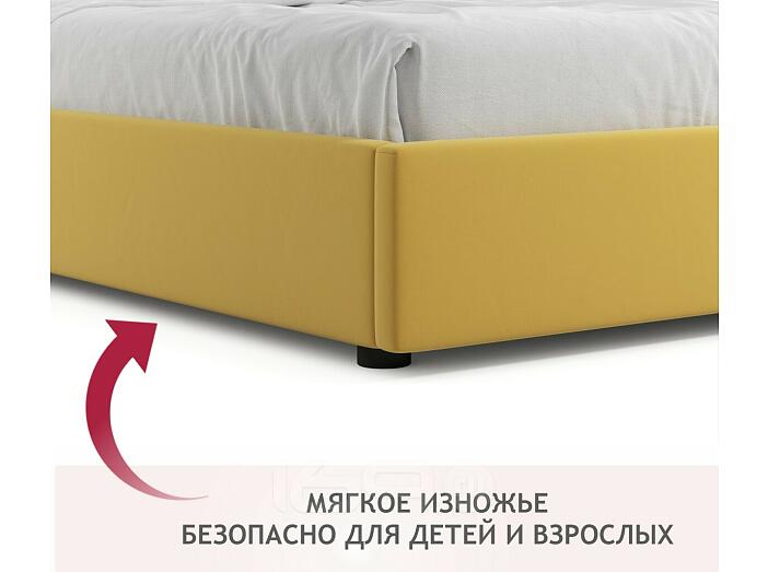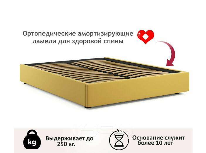 Кровать Base с матрасом велюр желтый С П/М 1600x2000, ортопедическое основание, без изголовья