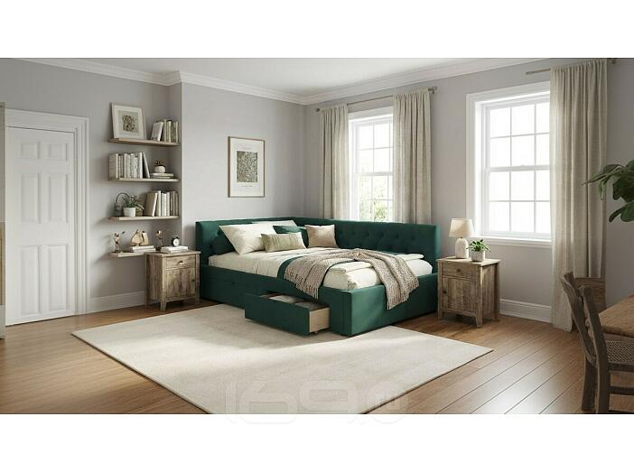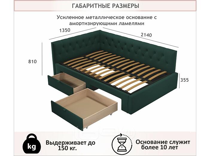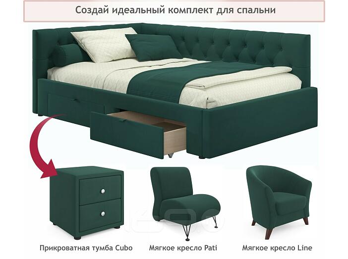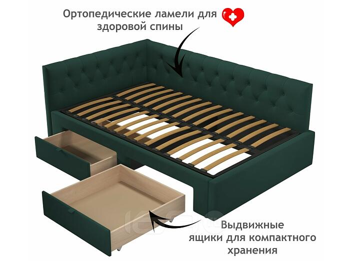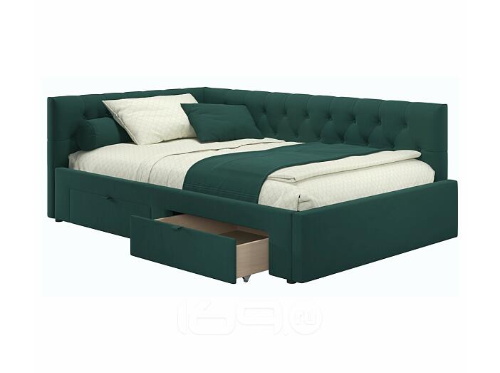 Кровать Afelia с матрасом велюр изумруд без П/М 1200x2000, ортопедическое основание, изголовье мягкое