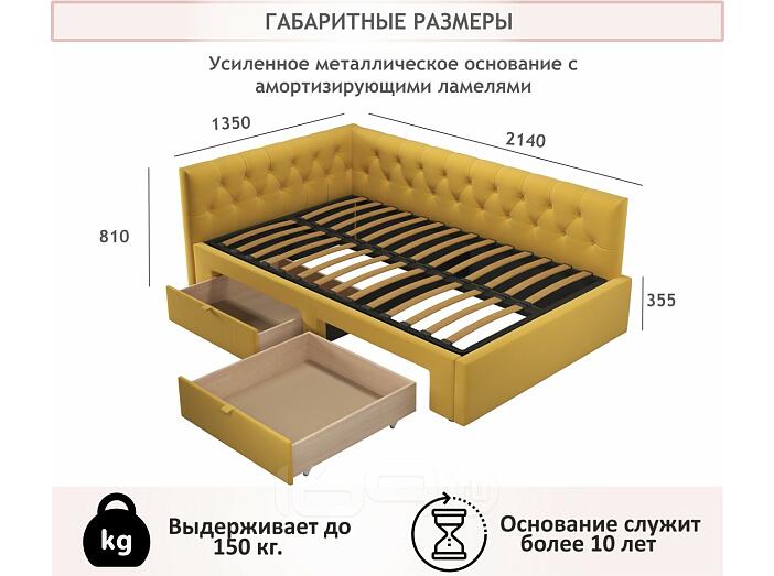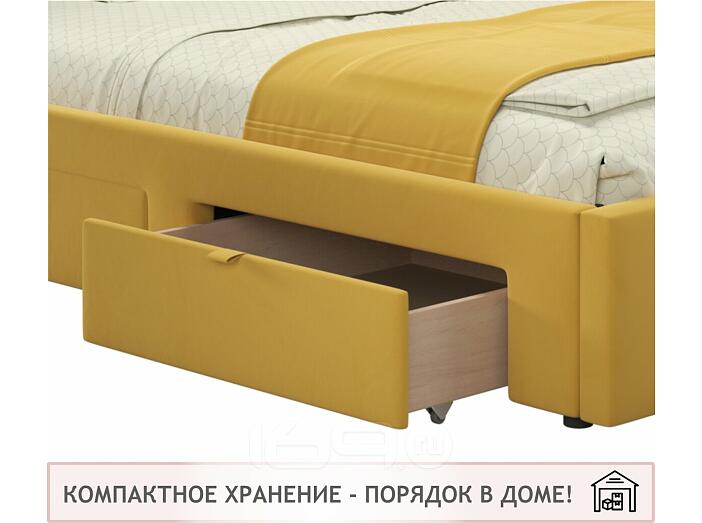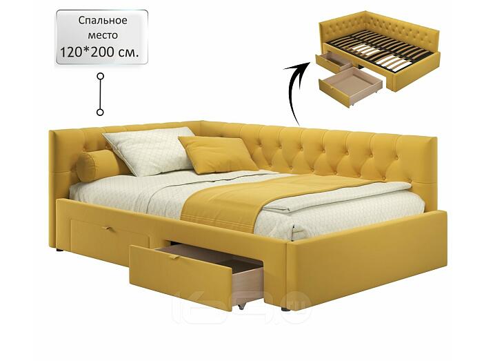 Кровать Afelia с матрасом велюр желтый без П/М 1200x2000, ортопедическое основание, изголовье мягкое
