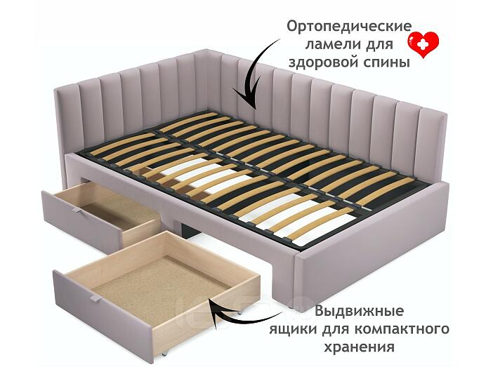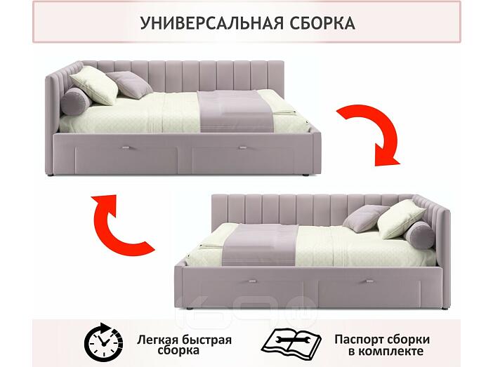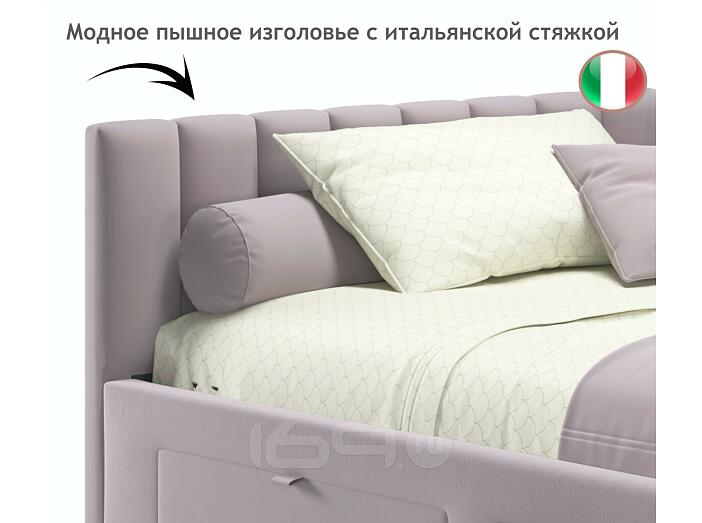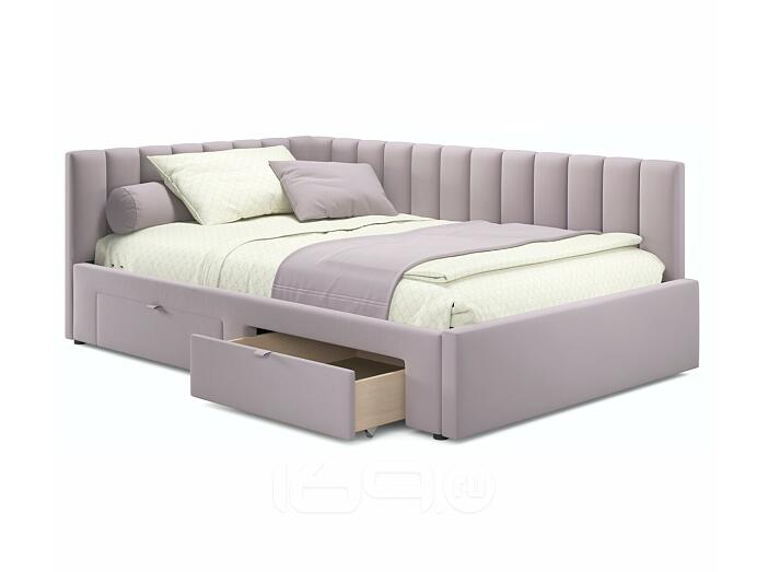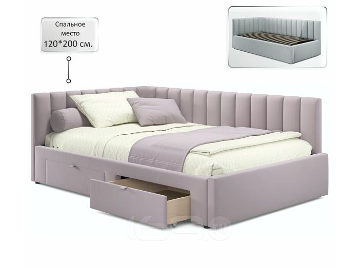 Кровать Milena с матрасом велюр лиловый без П/М 1200x2000, ортопедическое основание, изголовье мягкое
