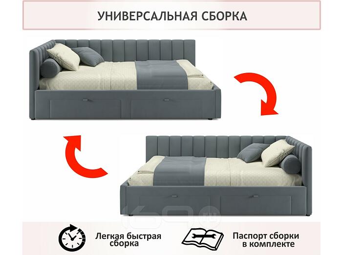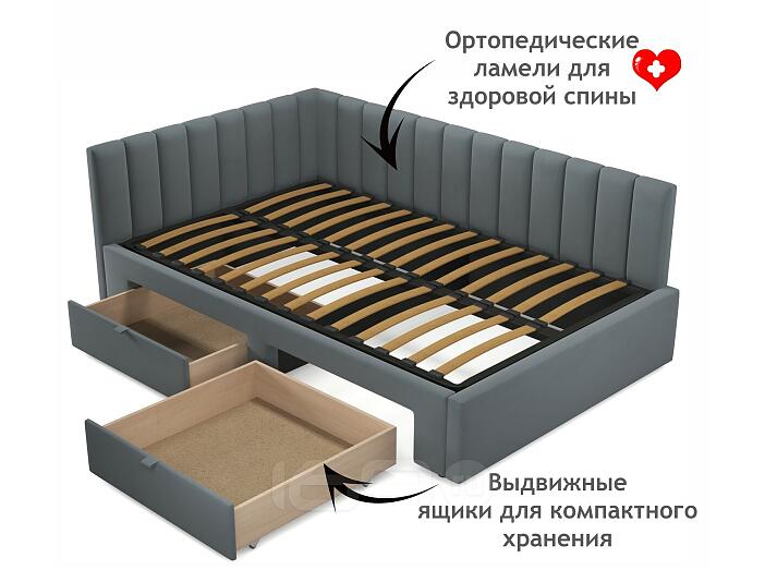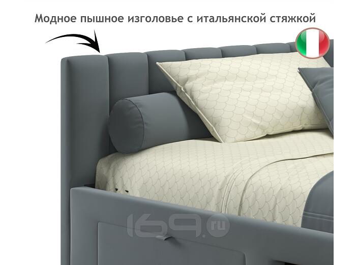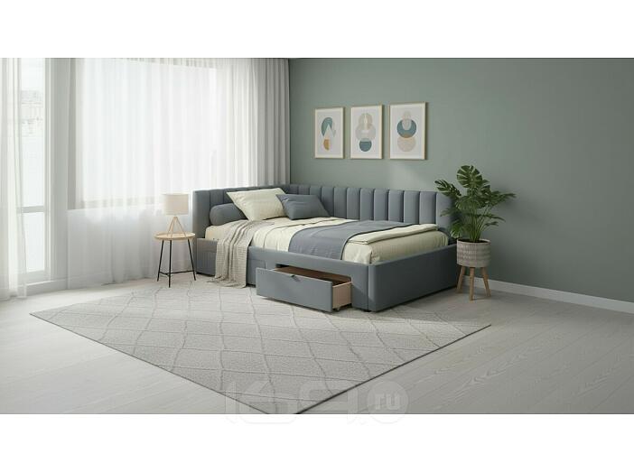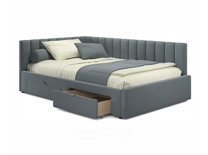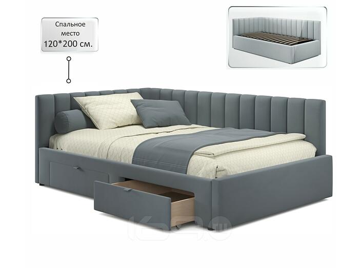 Кровать Milena с матрасом велюр серая без П/М 1200x2000, ортопедическое основание, изголовье мягкое