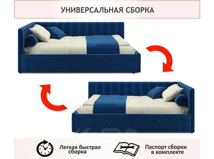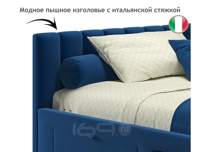 Кровать Milena с матрасом велюр синий без П/М 1200x2000, ортопедическое основание, изголовье мягкое