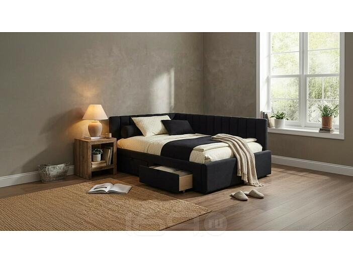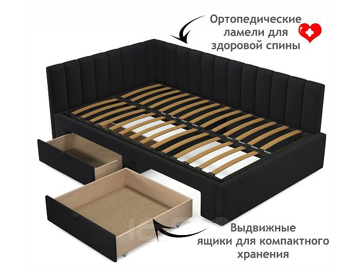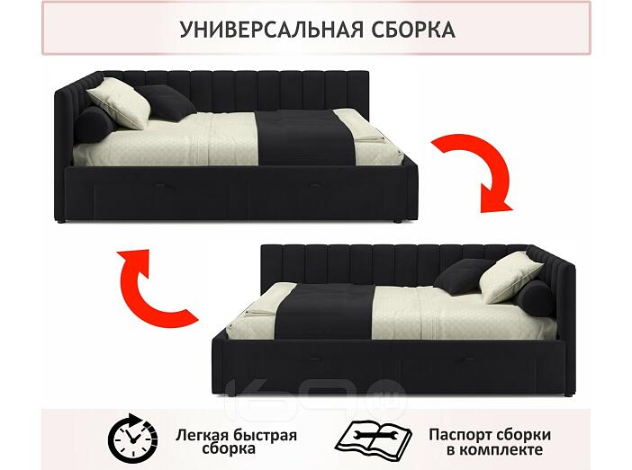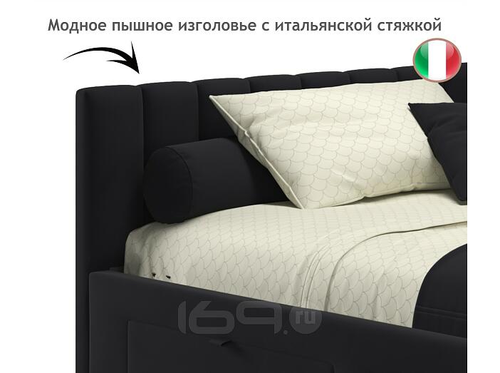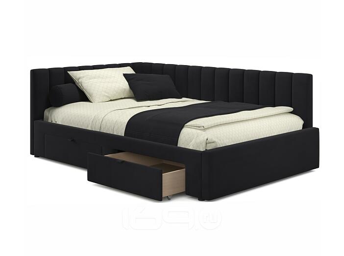 Кровать Milena с матрасом велюр черный без П/М 1200x2000, ортопедическое основание, изголовье мягкое