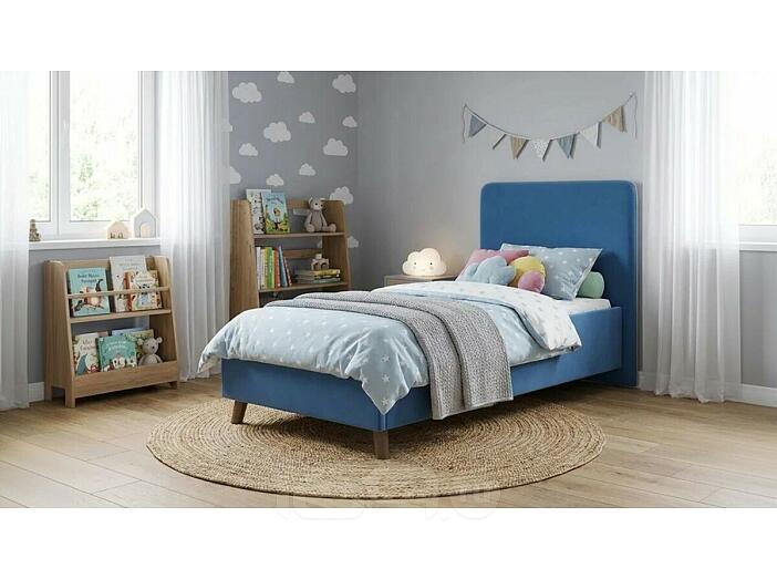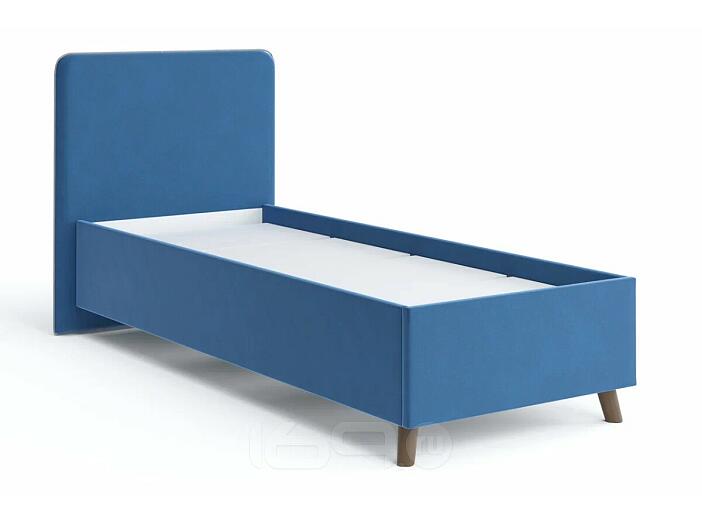 Кровать Ванесса с матрасом велюр синий без П/М 800x2000, щит-основание, изголовье мягкое