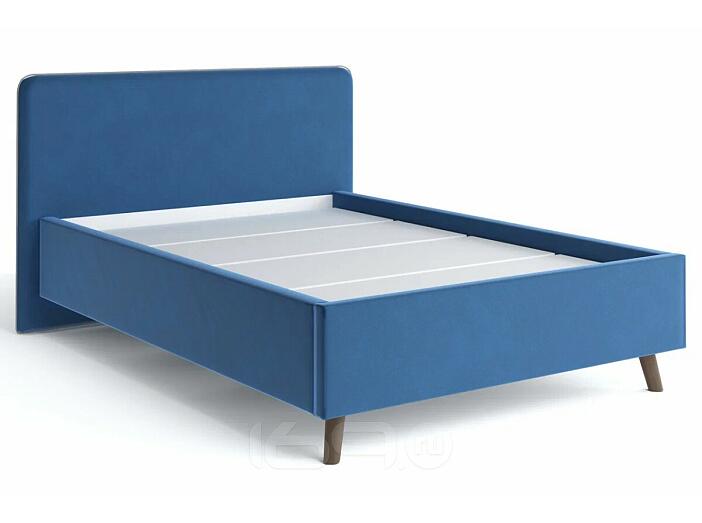 Кровать Ванесса с матрасом велюр синий без П/М 1400x2000, щит-основание, изголовье мягкое