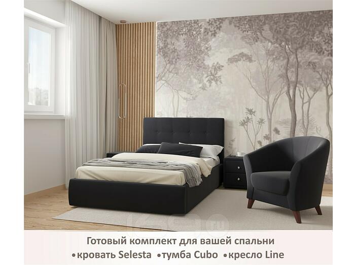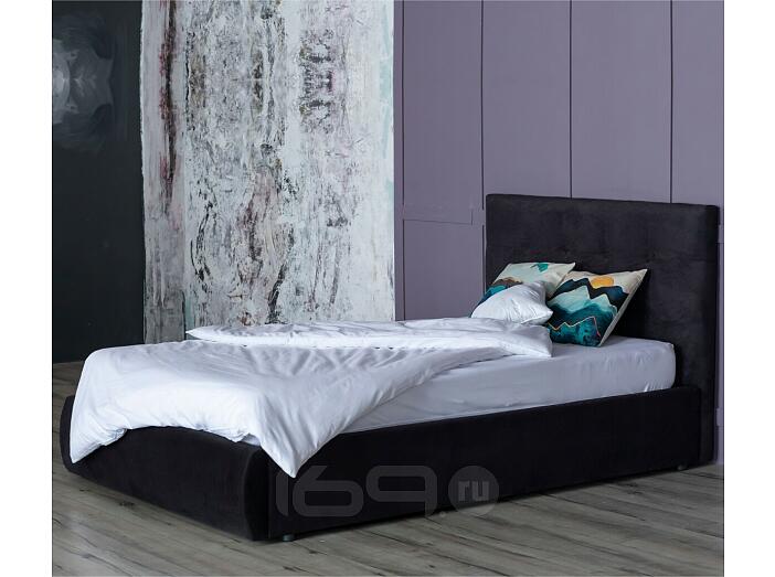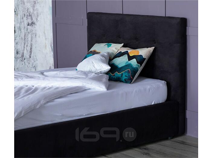 Кровать Селеста с матрасом велюр черный без П/М 1200x2000, ортопедическое основание, изголовье мягкое