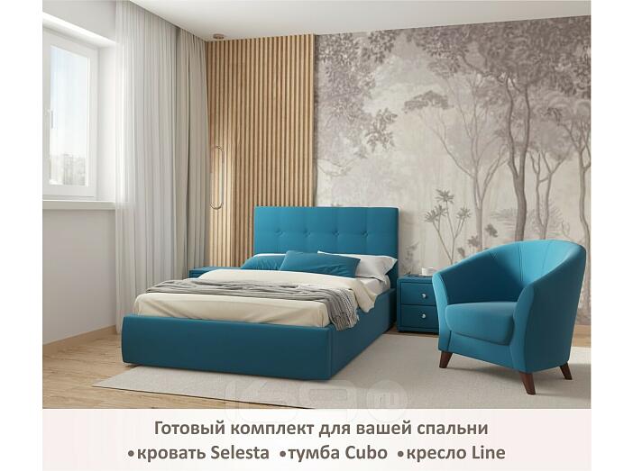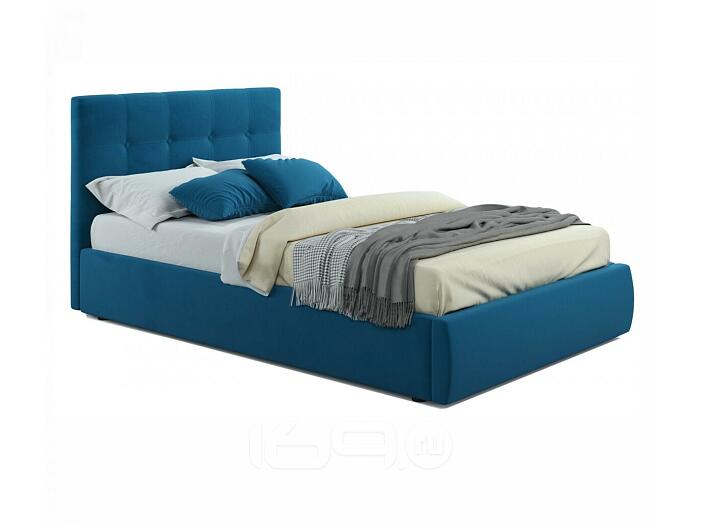 Кровать Селеста с матрасом велюр синий без П/М 1200x2000, ортопедическое основание, изголовье мягкое