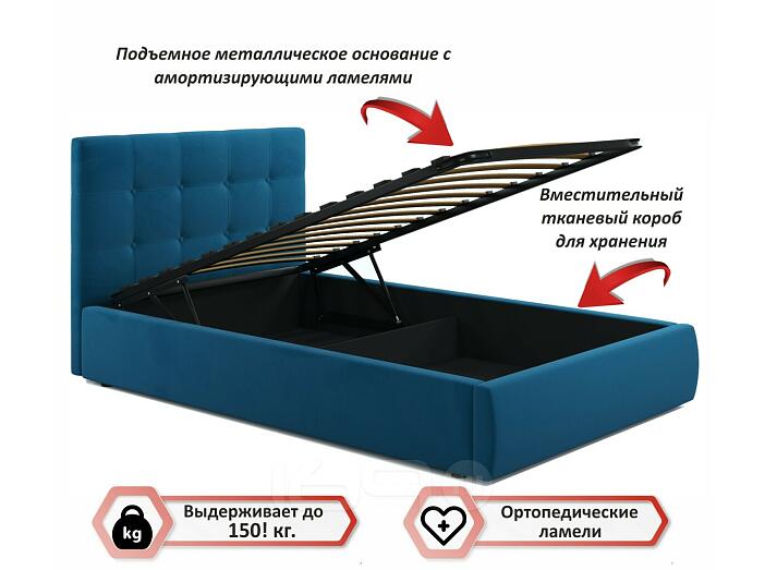 Кровать Селеста с матрасом велюр синий С П/М 1200x2000, ортопедическое основание, изголовье мягкое