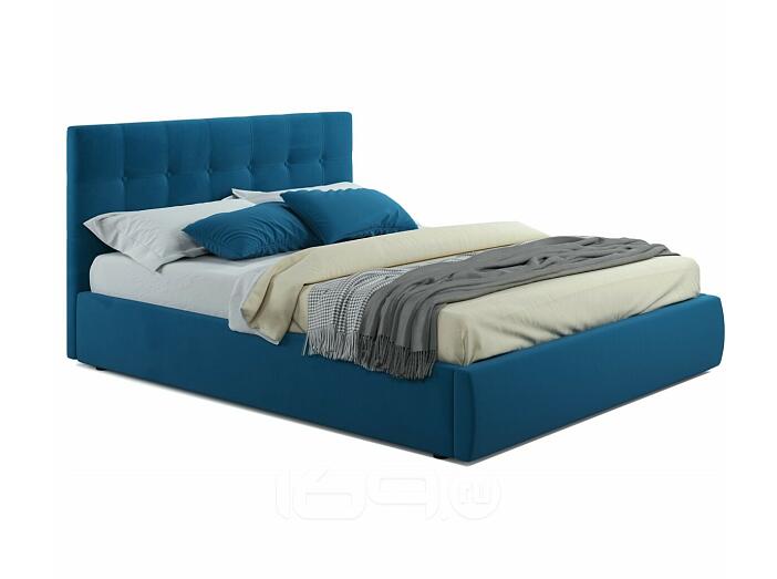 Кровать Селеста с матрасом велюр синий С П/М 1400x2000, ортопедическое основание, изголовье мягкое