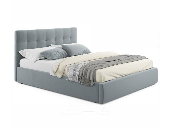 Кровать Селеста с матрасом велюр серый без П/М 1600x2000, ортопедическое основание, изголовье мягкое