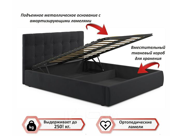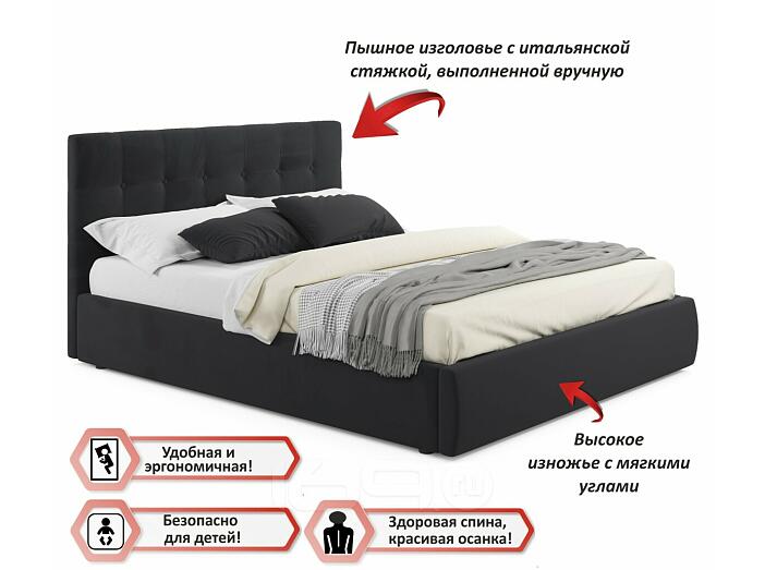 Кровать Селеста с матрасом велюр черный С П/М 1600x2000, ортопедическое основание, изголовье мягкое