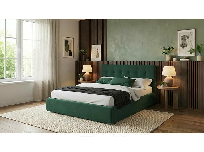 Кровать Селеста с матрасом велюр изумруд С П/М 1600x2000, ортопедическое основание, изголовье мягкое