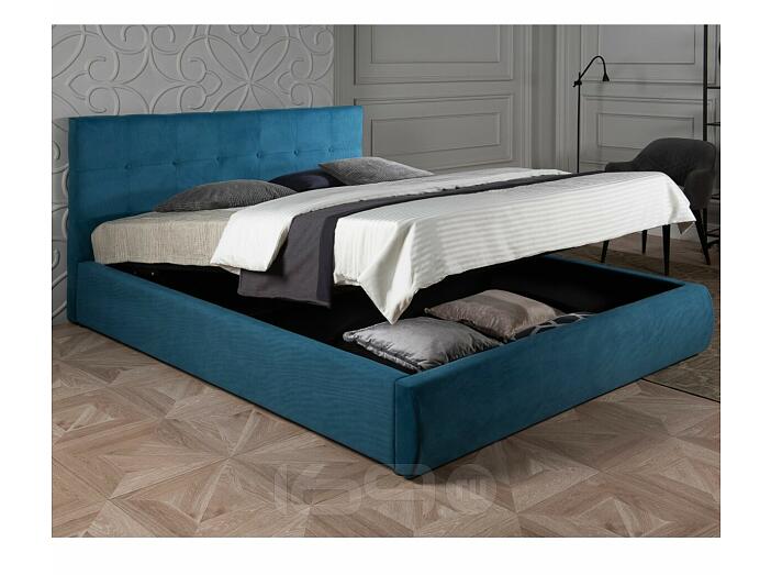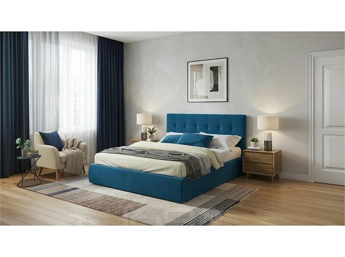 Кровать Селеста с матрасом велюр синий С П/М 1600x2000, ортопедическое основание, изголовье мягкое