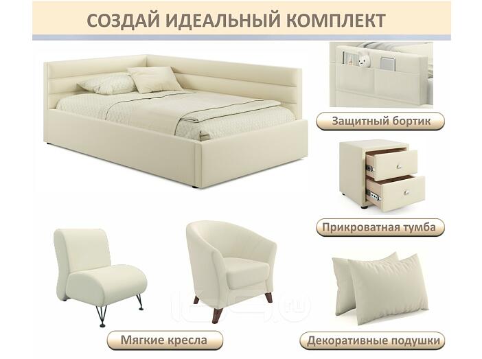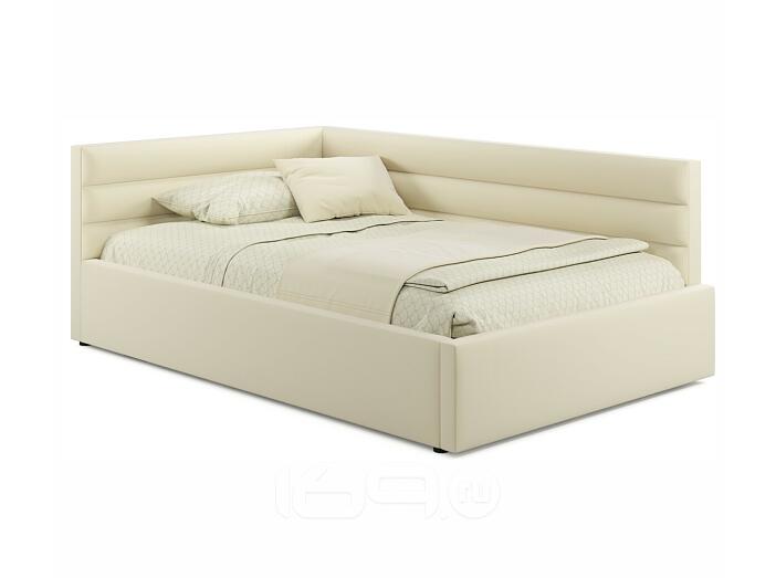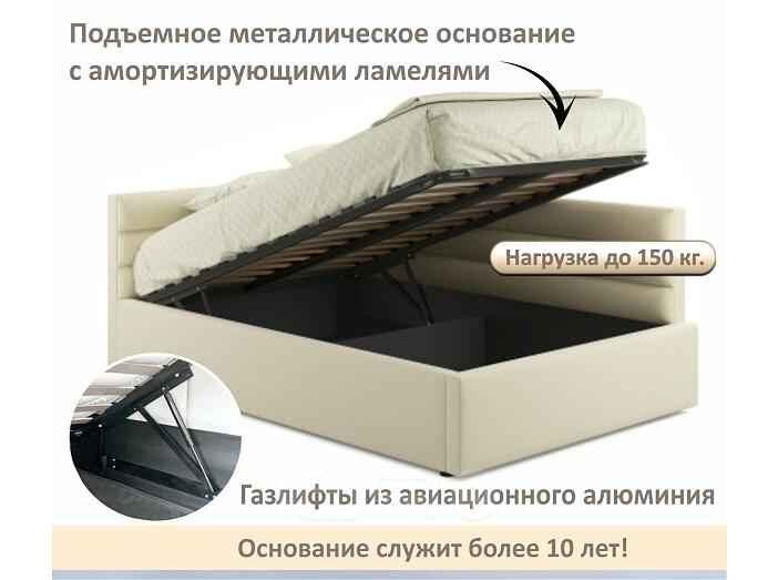 Кровать Aura с матрасом велюр бежевый С П/М 1200x2000, ортопедическое основание, изголовье мягкое