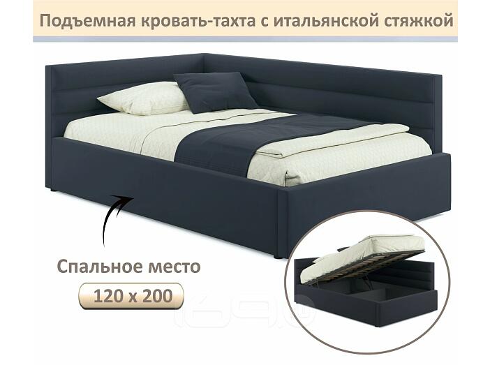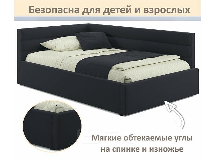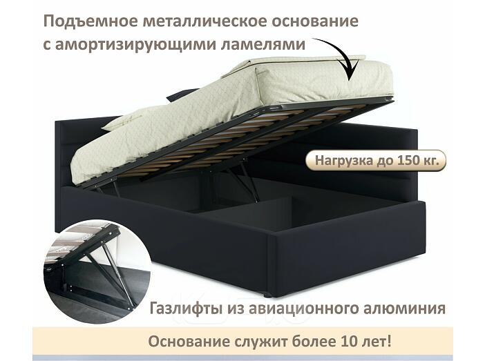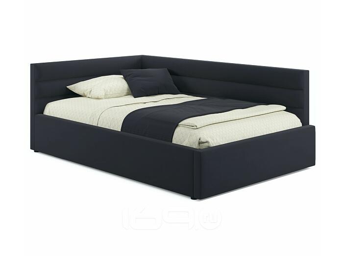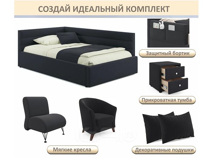 Кровать Aura с матрасом велюр черный С П/М 1200x2000, ортопедическое основание, изголовье мягкое