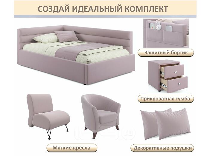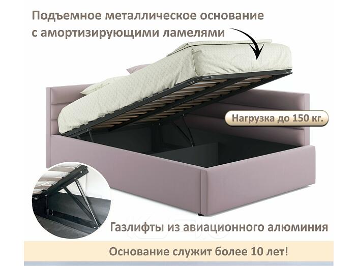 Кровать Aura с матрасом велюр лиловый С П/М 1200x2000, ортопедическое основание, изголовье мягкое