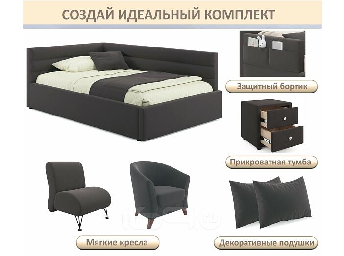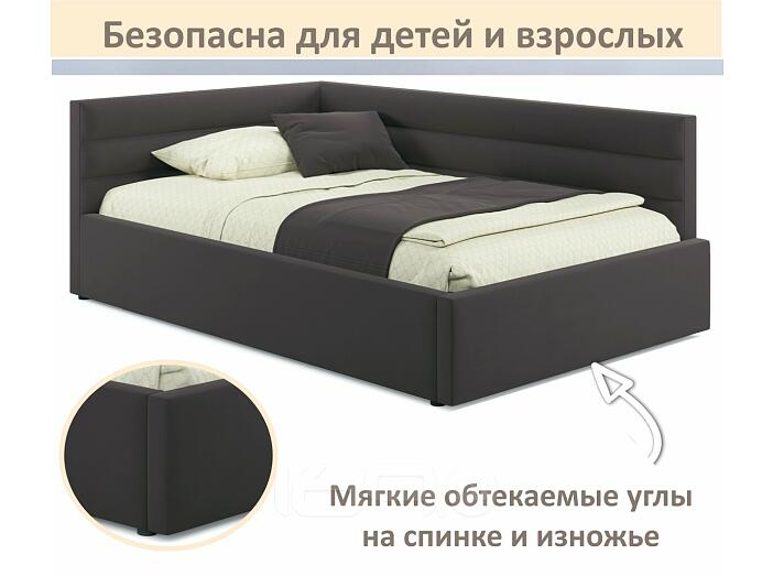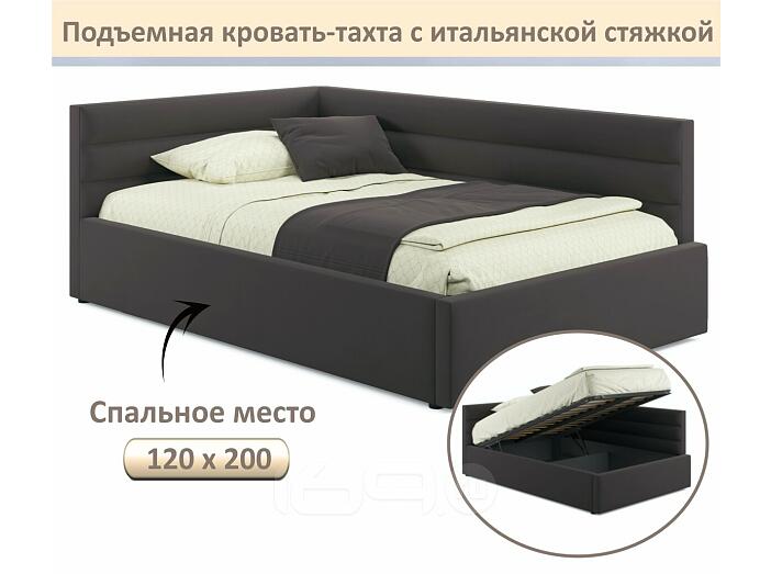 Кровать Aura с матрасом велюр шоколад С П/М 1200x2000, ортопедическое основание, изголовье мягкое