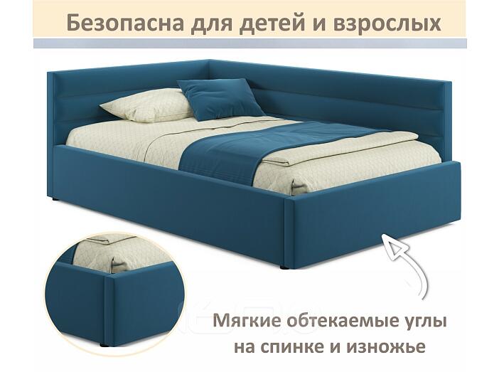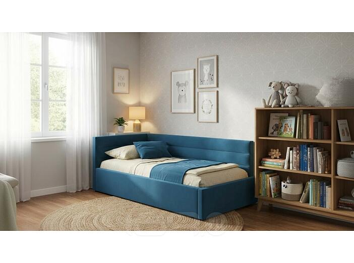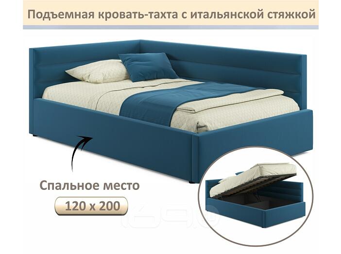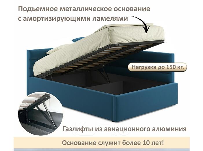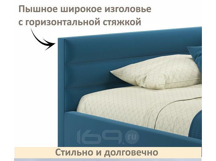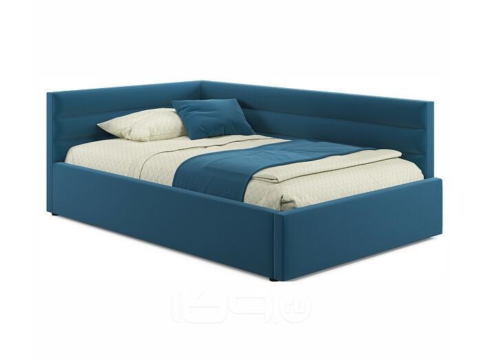 Кровать Aura с матрасом велюр синий С П/М 1200x2000, ортопедическое основание, изголовье мягкое
