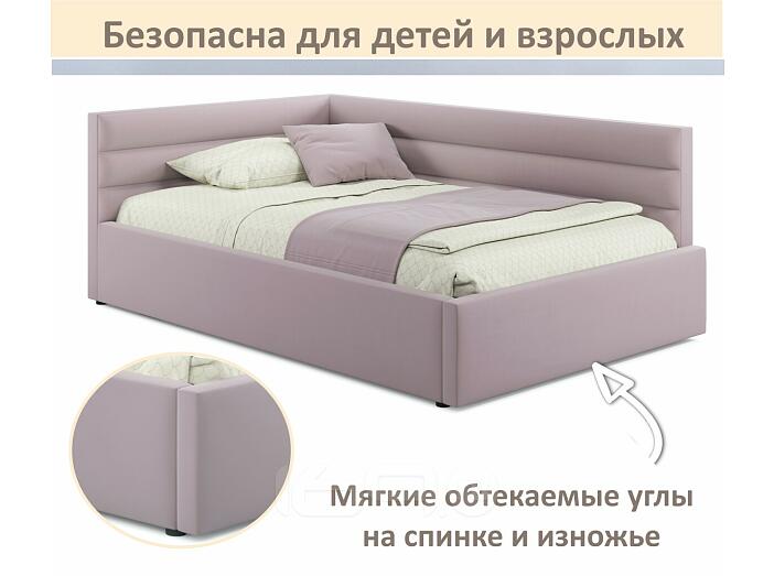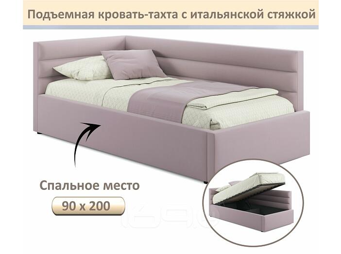 Кровать Aura с матрасом велюр лиловый С П/М 900x2000, ортопедическое основание, изголовье мягкое