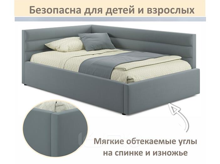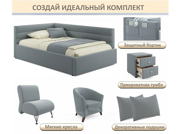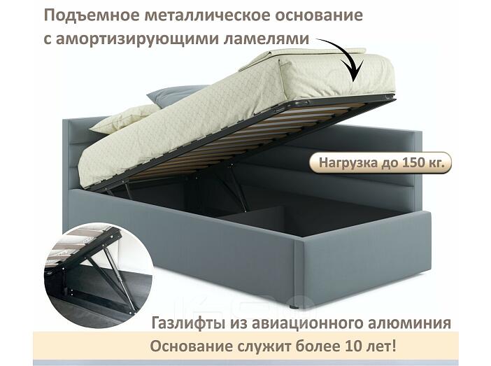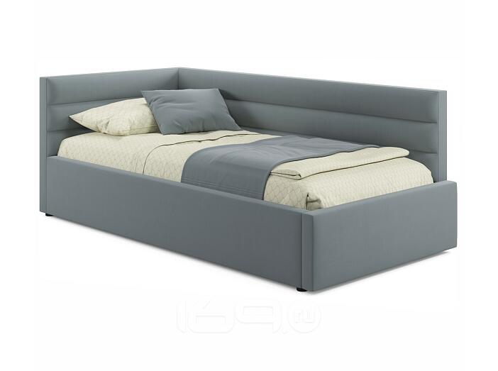 Кровать Aura с матрасом велюр серый С П/М 900x2000, ортопедическое основание, изголовье мягкое