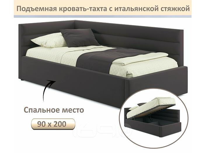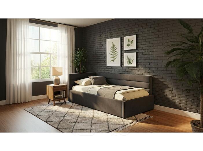 Кровать Aura с матрасом велюр шоколад С П/М 900x2000, ортопедическое основание, изголовье мягкое