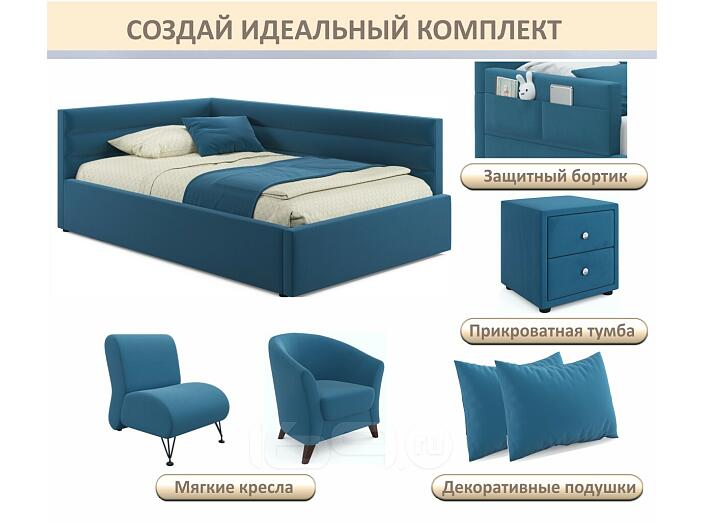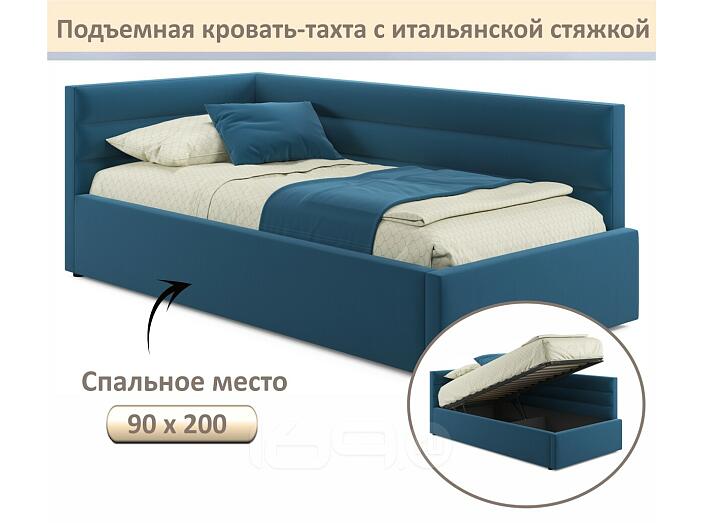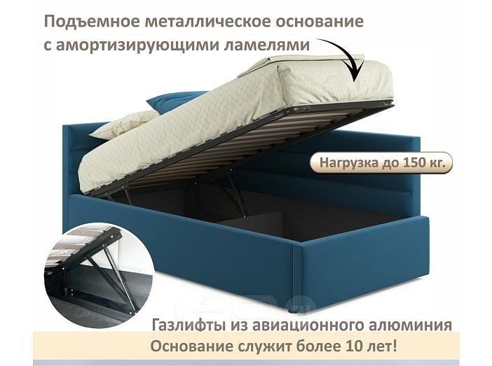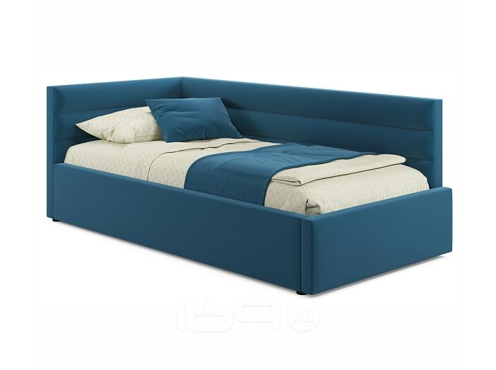 Кровать Aura с матрасом велюр синий С П/М 900x2000, ортопедическое основание, изголовье мягкое