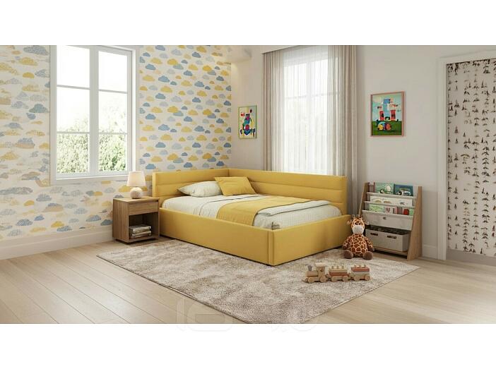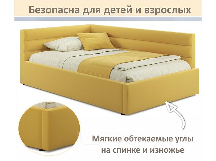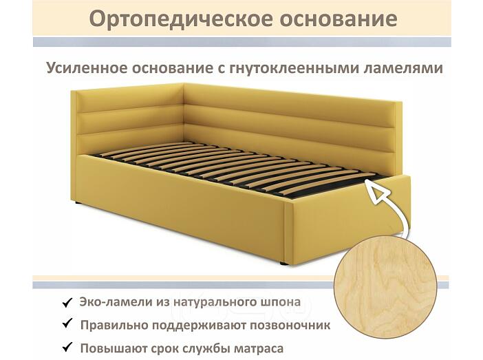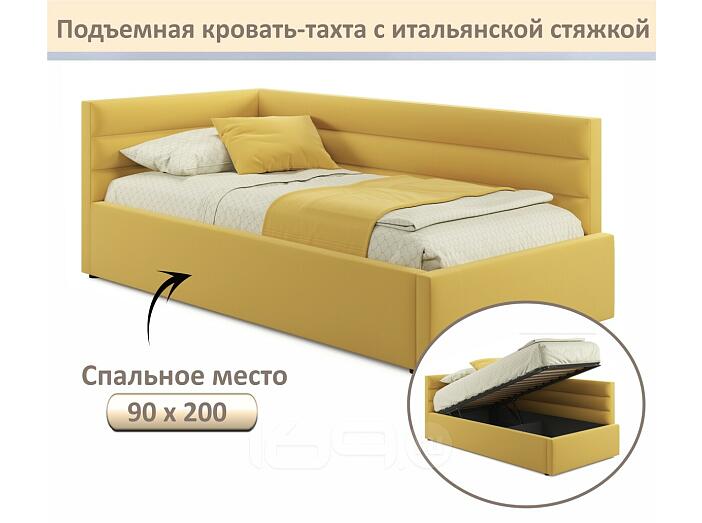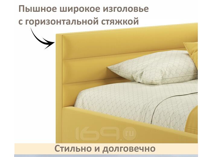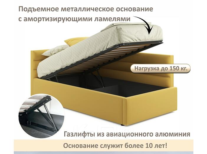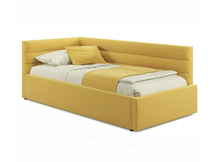 Кровать Aura с матрасом велюр желтый С П/М 900x2000, ортопедическое основание, изголовье мягкое