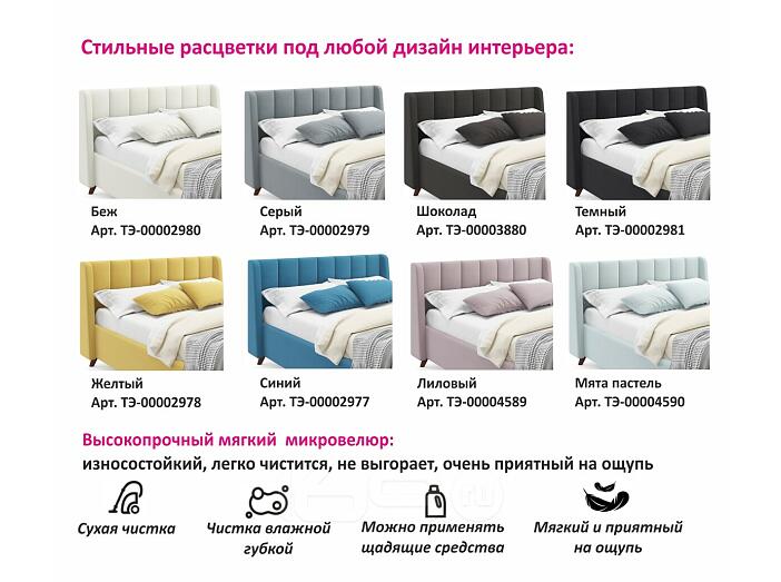 Кровать Betsi с матрасом велюр лиловый С П/М 1600x2000, ортопедическое основание, изголовье мягкое