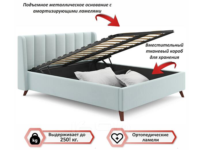 Кровать Betsi с матрасом велюр мята пастель С П/М 1600x2000, ортопедическое основание, изголовье мягкое
