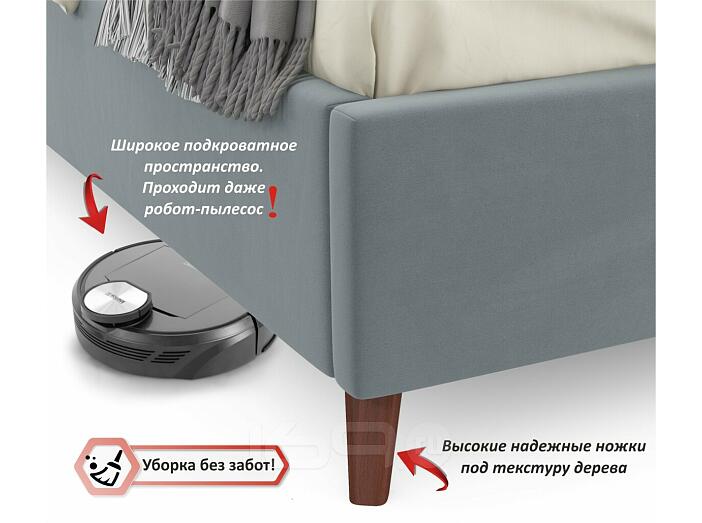 Кровать Betsi с матрасом велюр серый С П/М 1600x2000, ортопедическое основание, изголовье мягкое