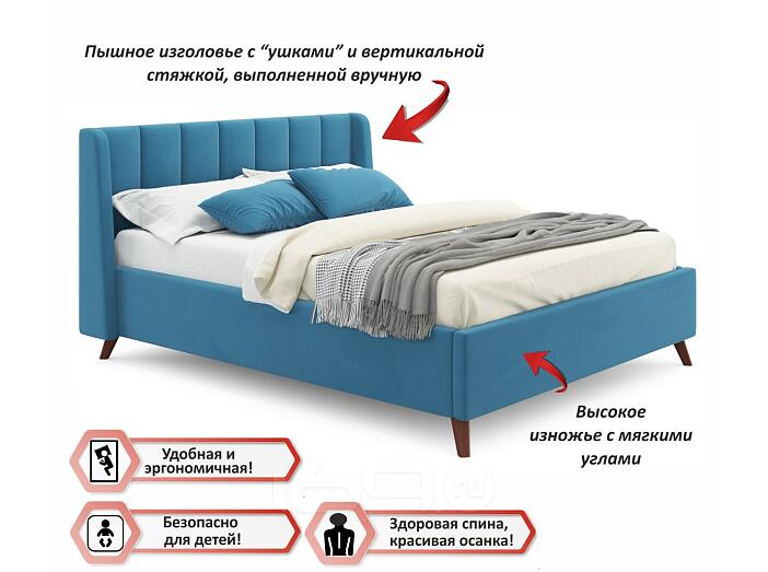 Кровать Betsi с матрасом велюр синий С П/М 1600x2000, ортопедическое основание, изголовье мягкое