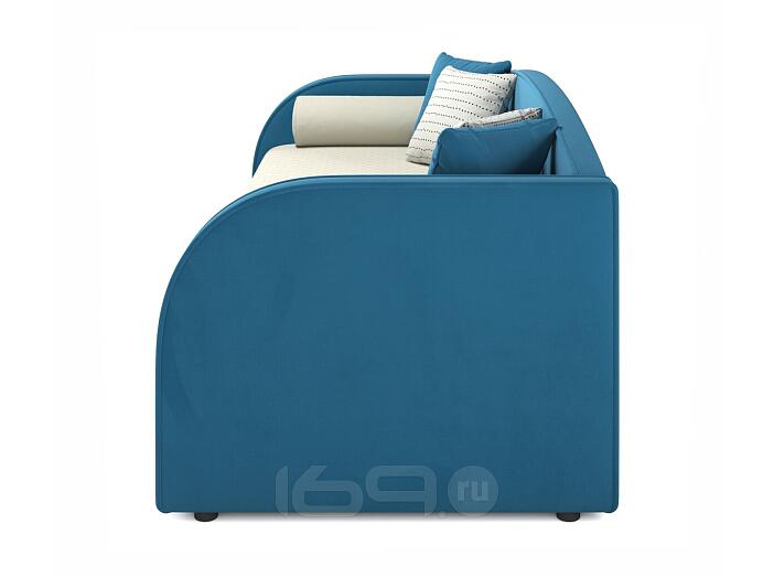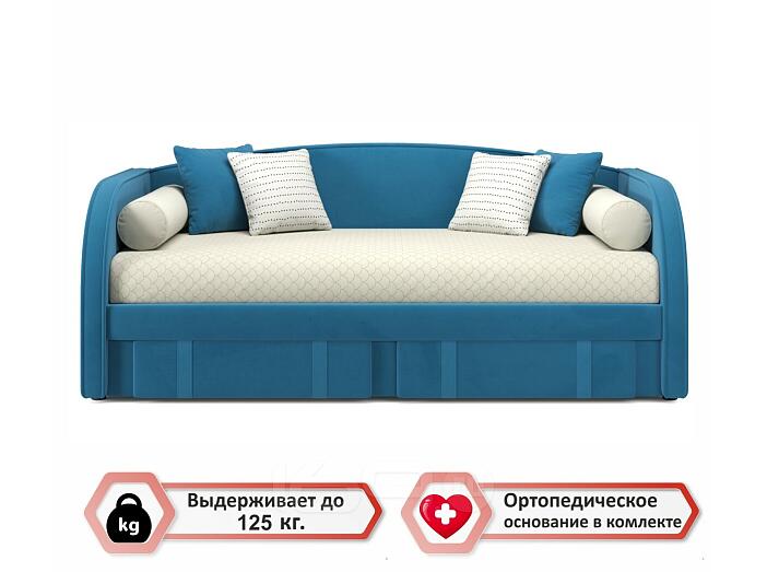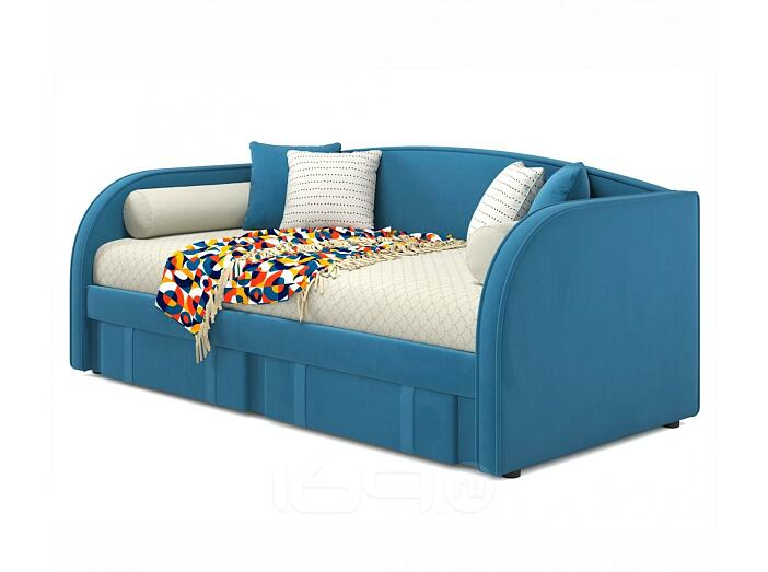 Кровать Elda с матрасом велюр синий без П/М 900x2000, изголовье мягкое