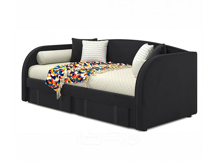 Кровать Elda с матрасом велюр темный без П/М 900x2000, изголовье мягкое