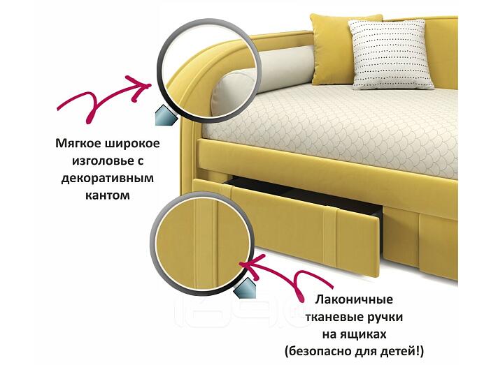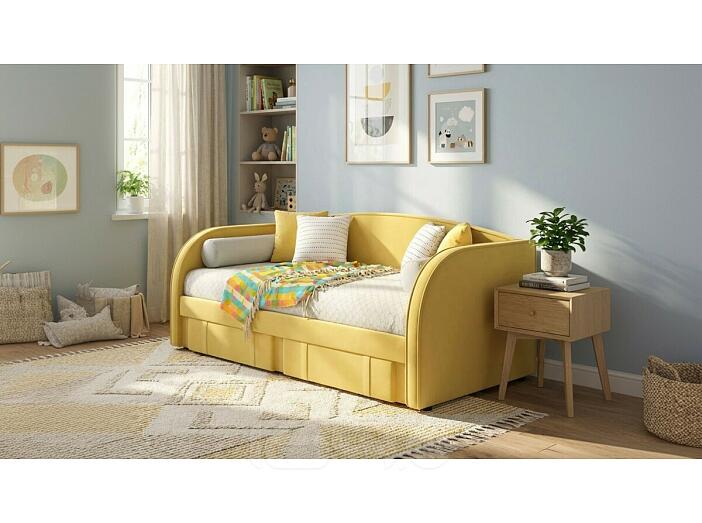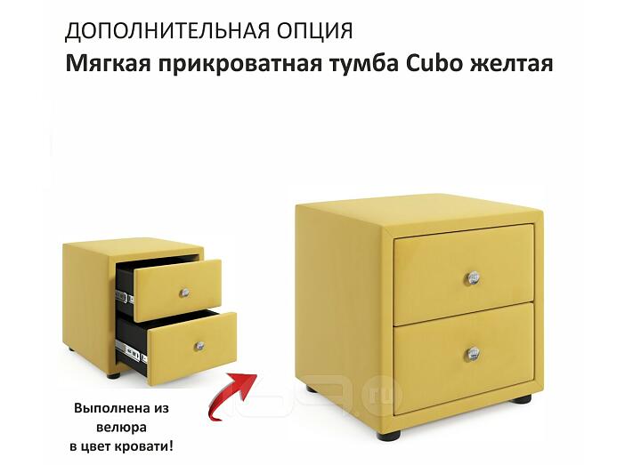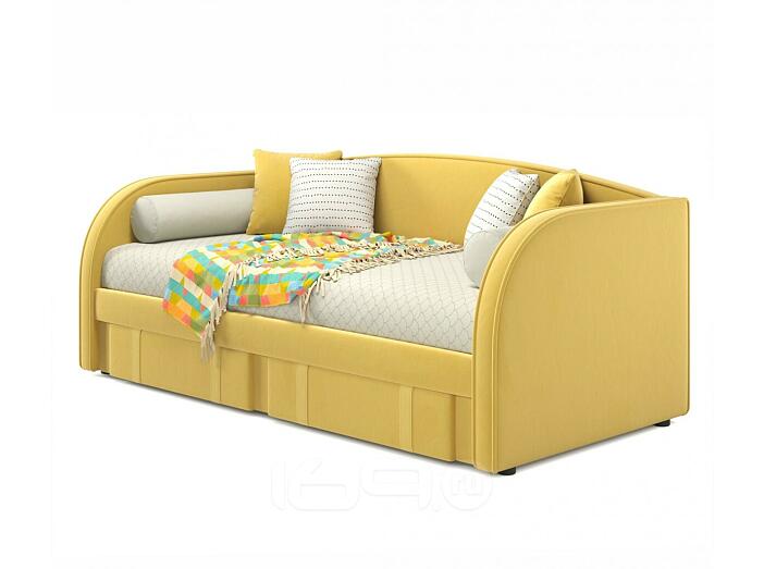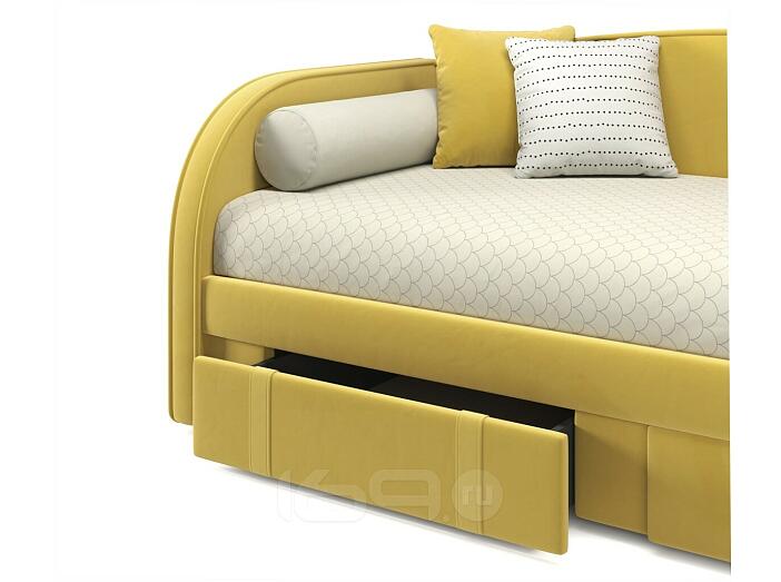 Кровать Elda с матрасом велюр жёлтый без П/М 900x2000, изголовье мягкое