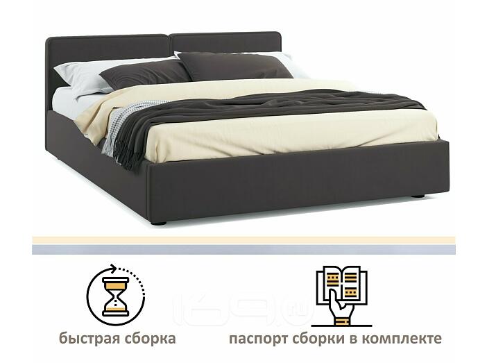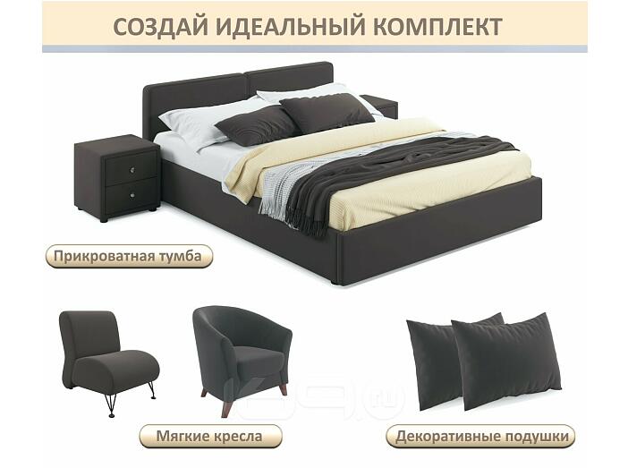 Кровать Erika с матрасом велюр шоколад С П/М 1600x2000, ортопедическое основание, изголовье мягкое