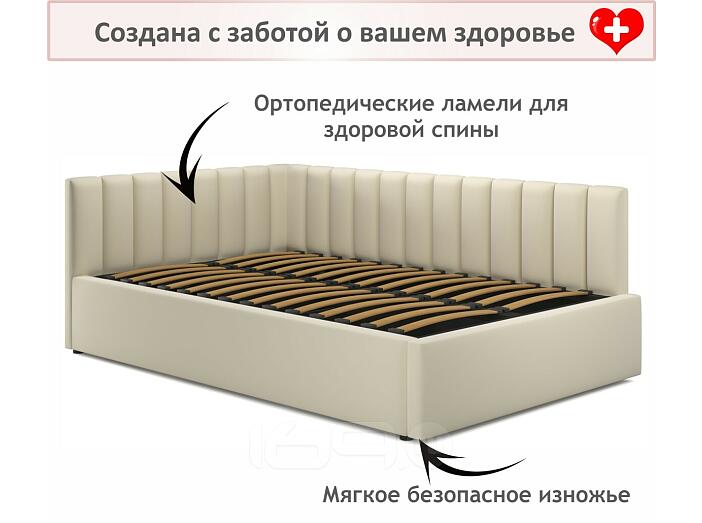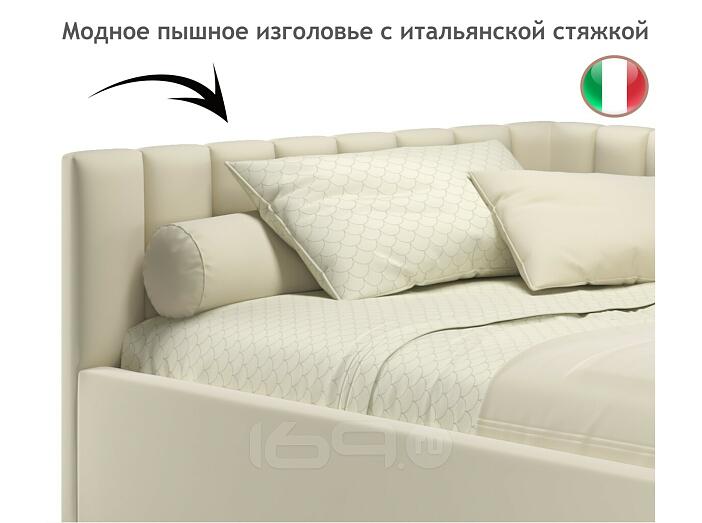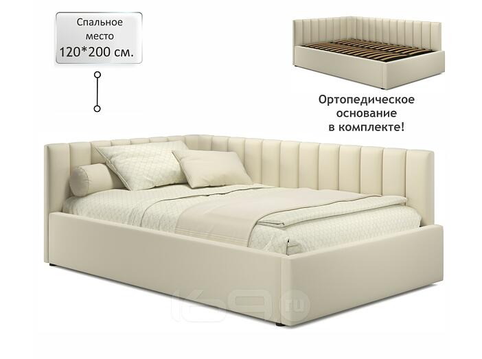 Кровать Milena с матрасом велюр бежевый без П/М 1200x2000, изголовье мягкое
