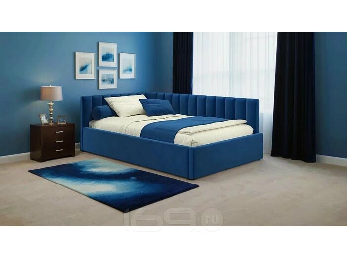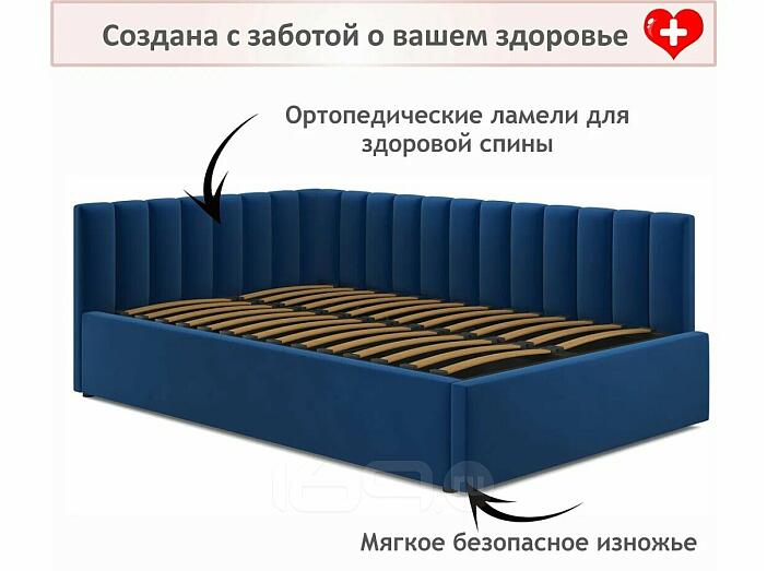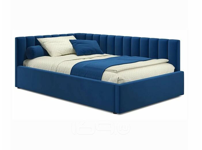 Кровать Milena с матрасом велюр синий без П/М 1200x2000, изголовье мягкое