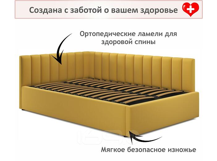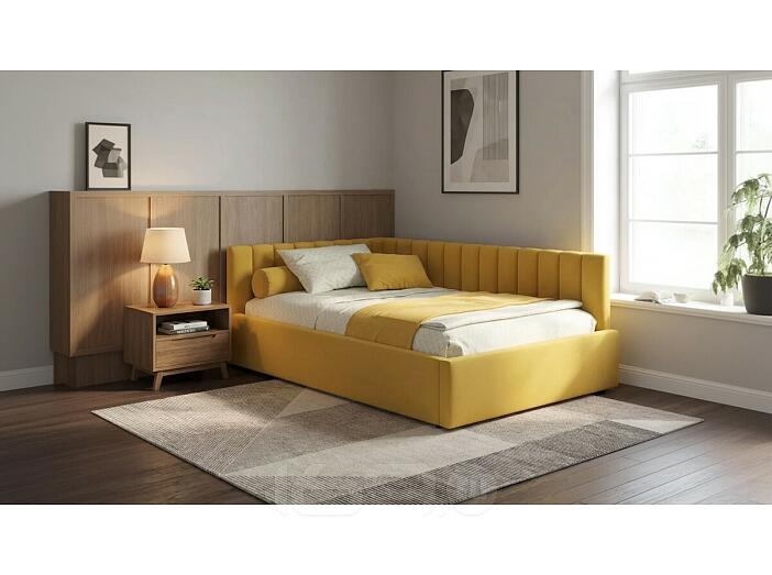 Кровать Milena с матрасом велюр желтый без П/М 1200x2000, изголовье мягкое