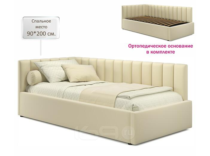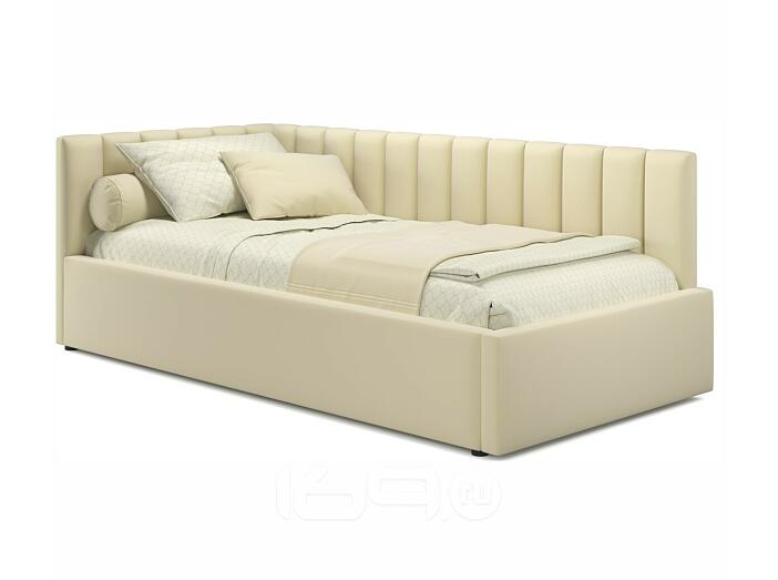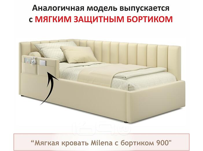 Кровать Milena с матрасом велюр бежевый без П/М 900x2000, изголовье мягкое