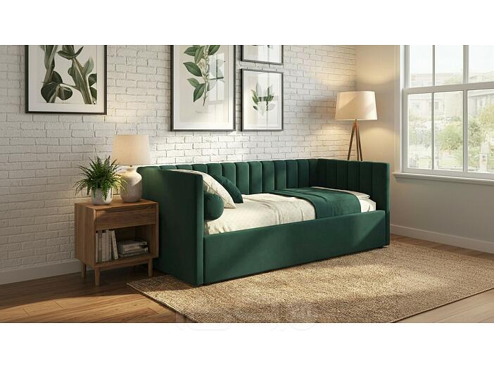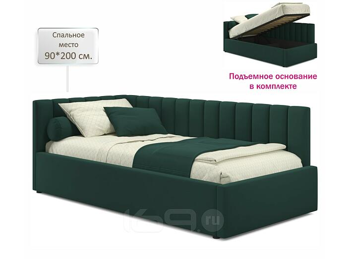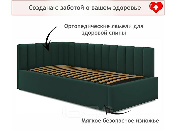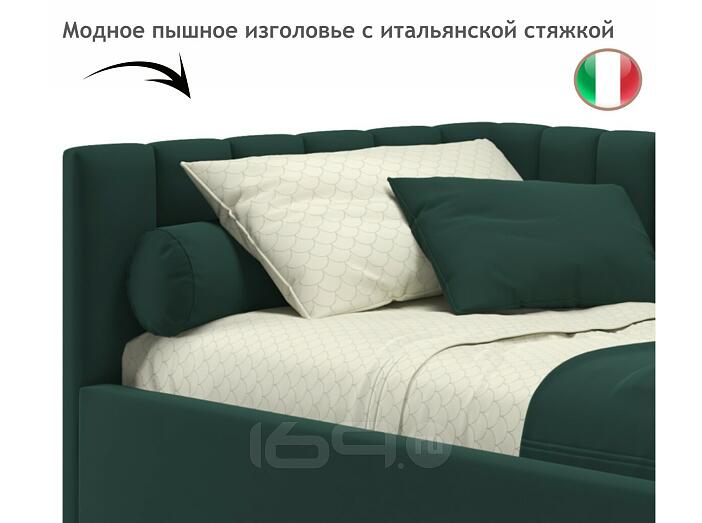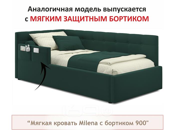 Кровать Milena с матрасом велюр изумруд С П/М 900x2000, ортопедическое основание, изголовье мягкое