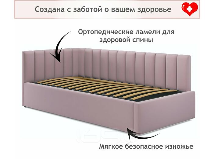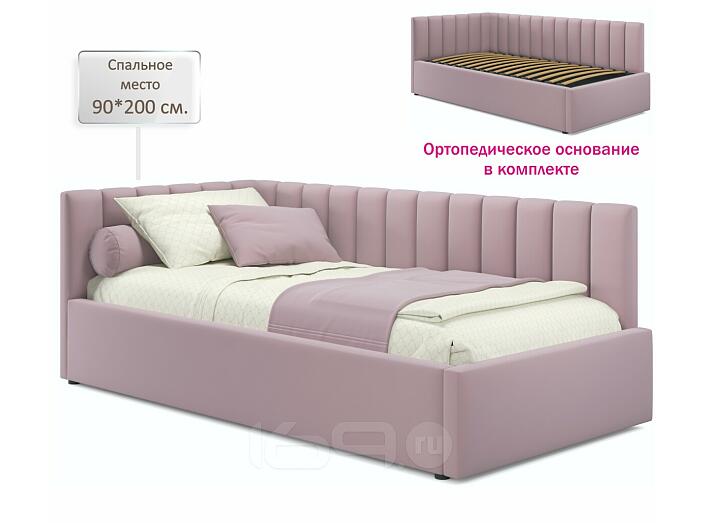 Кровать Milena с матрасом велюр лиловый без П/М 900x2000, изголовье мягкое