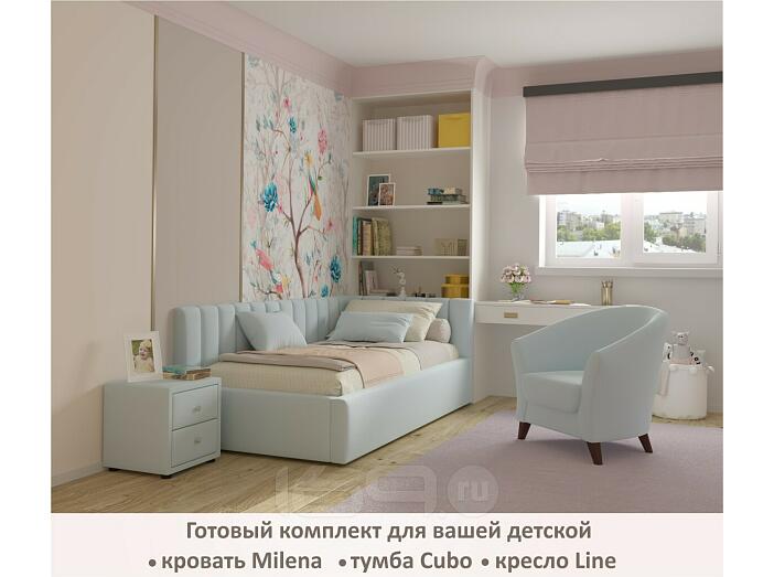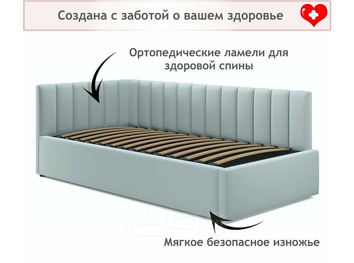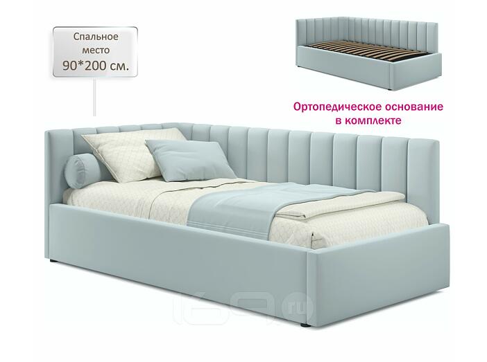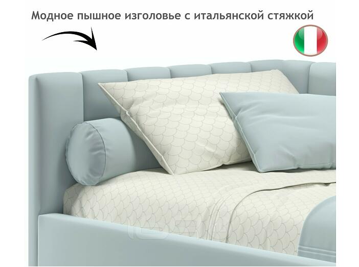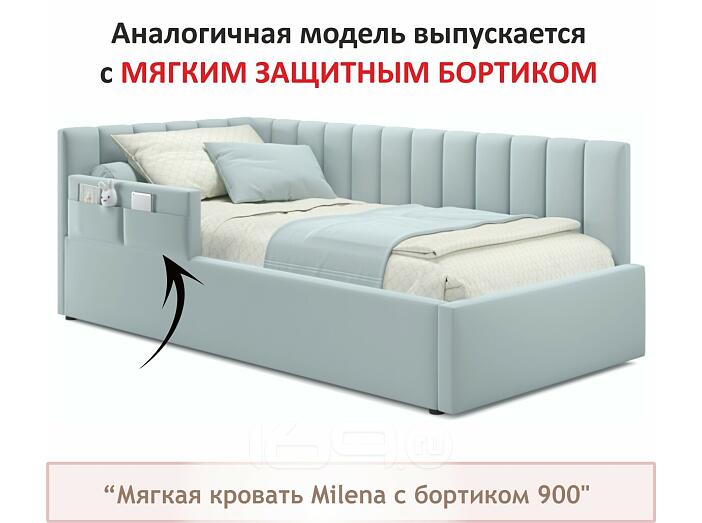 Кровать Milena с матрасом велюр мята пастель без П/М 900x2000, изголовье мягкое